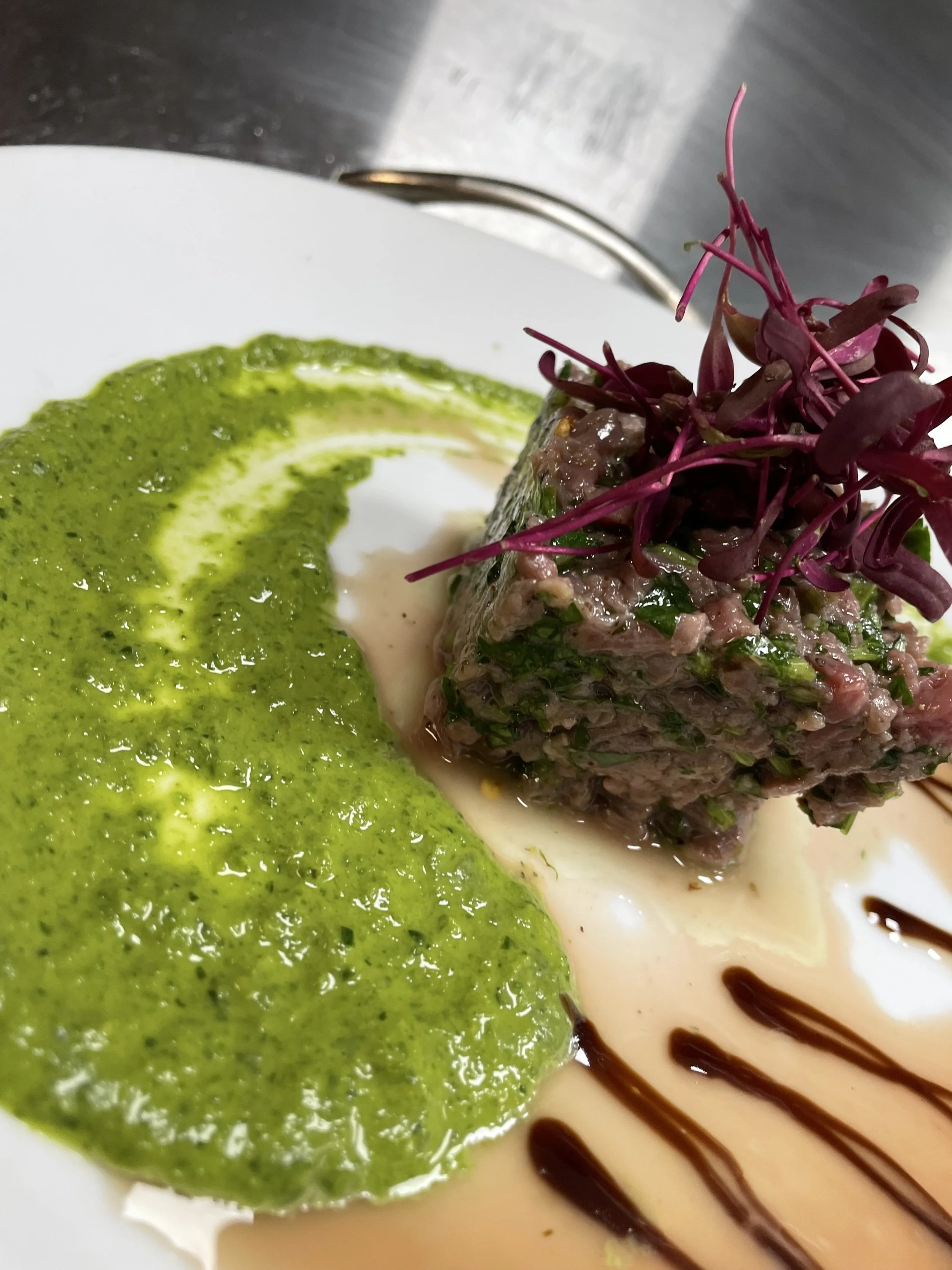 Seared Salmon, spinach mouse, pecorino romano, parmesano reggiano, puff pastry.